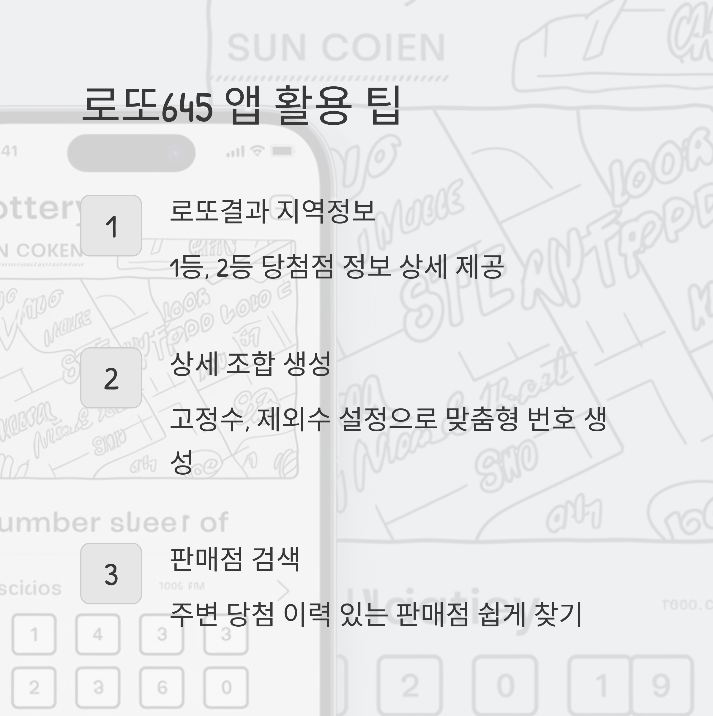 로또645 앱을 활용하면 당첨 통계와 패턴을 체계적으로 분석할 수 있습니다. 특히 상세 조합 생성 기능으로 고정수와 제외수를 설정하면 더 전략적인 번호 선택이 가능해요.