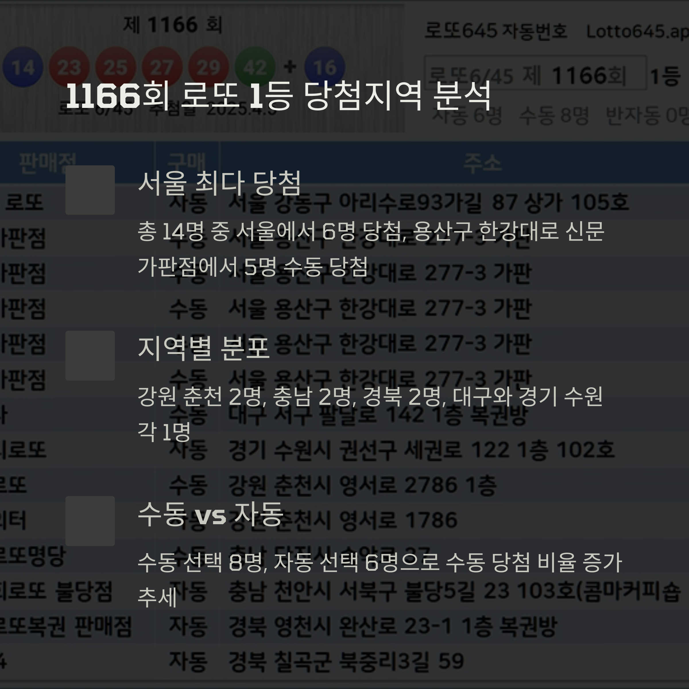 1. 1166회 로또 1등 2등 당첨지역 안내