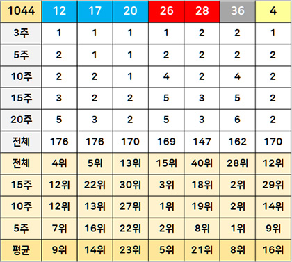 1044회 로또 당첨번호에 대한 동일한 분석 자료 입니다.