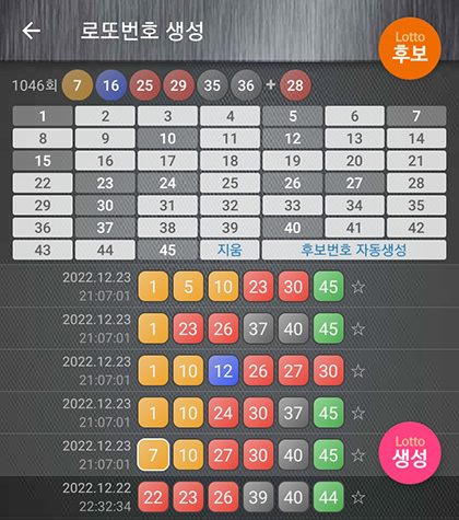 로또번호 자동생성으로 로또 1047회 당첨예상번호를 받고 전체적 일치 결과가 좋다면, 2022년 마지막 12월 31일 추첨되는 로또 1048회 당첨 예상번호 분석 할 때도 로또자동생성을 이용합니다.