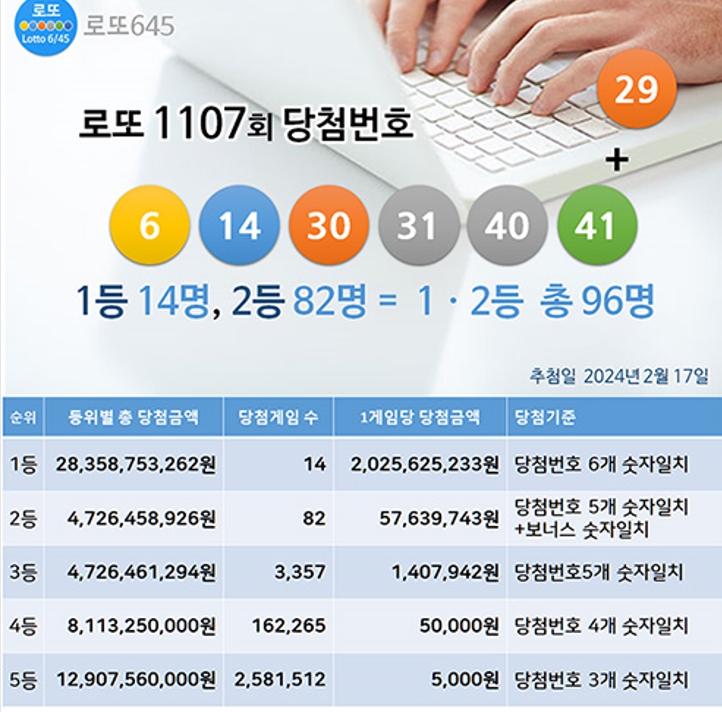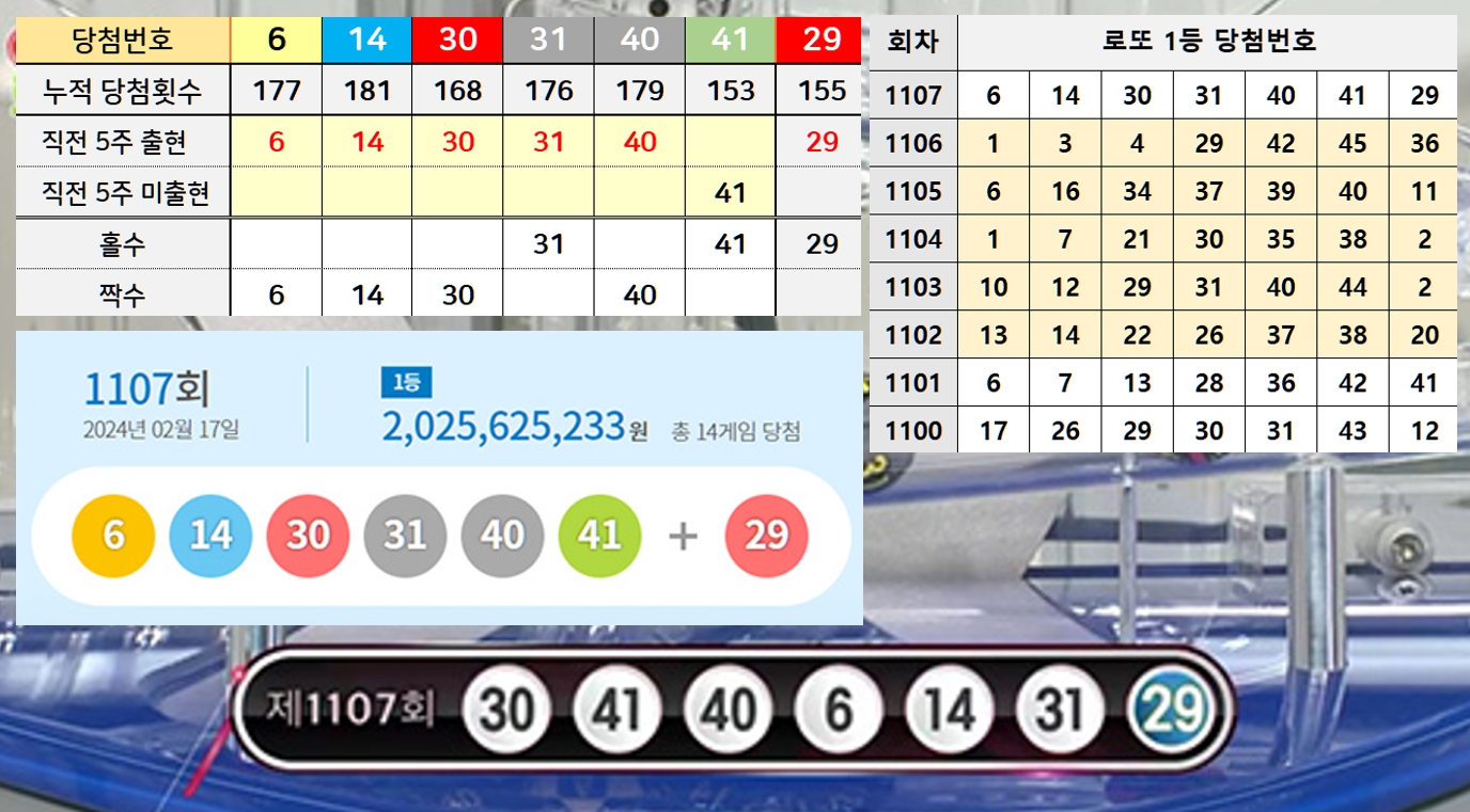 - 1등 당첨 번호: 6, 14, 30, 31, 40, 41