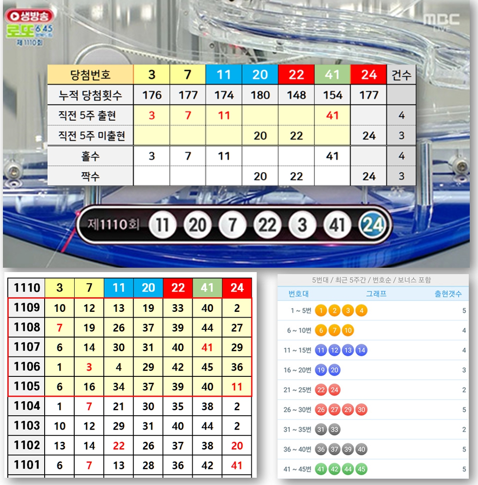 이번주 로또 분석 1111회 로또 예상번호 평균번호 제외수 로또 당첨지역 안내 1110회 로또당첨번호