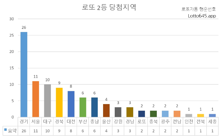 최근 로또 2등 당첨자 나온 복권판매점을 지역별로 분류했습니다.