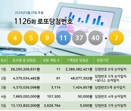 지난 1126회 로또 당첨번호는 4번, 5번, 9번, 11번, 37번, 40번이었어요. 보너스 번호는 7번이었구요. 이번 회차에서 가장 많이 출현한 번호는 34번으로, 총 195회 출현 기록을 가지고 있답니다. 또한, 40번은 최근 5주간 3회 출현해서 주목할 만한 번호로 볼 수 있어요.