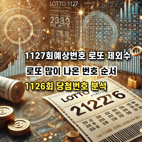 로또 많이 나온 번호 순서, 1127회 예상번호, 제외수, 그리고 1126회 당첨번호 분석까지 한 번에 다뤄볼게요. 로또 번호 추첨에서 자주 나오는 번호와 앞으로 예상되는 번호, 그리고 제외해야 할 번호를 데이터 기반으로 분석해 봤어요.