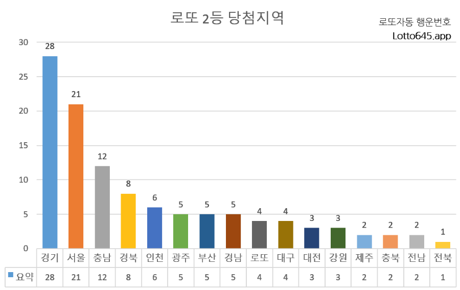 지역별 2등 당첨자 나온 인원수를 그래프로 정리했습니다.