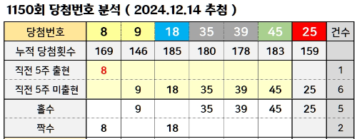 1150회 로또 당첨번호 분석