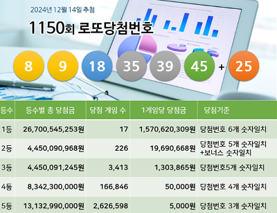 다음 1151회 추첨은 12월 21일에 진행되며, 3호기 추첨기가 사용될 예정입니다. 이번 회차도 많은 당첨자가 나오길 기대해봅니다.
