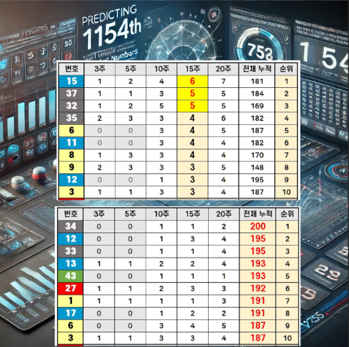 1153회까지 분석을 통한 1154회 로또 당첨번호 예측 방법